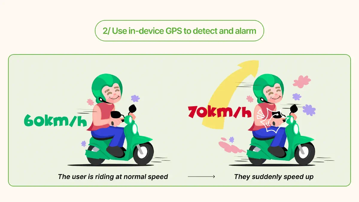 For the alarm part, the app will use phone’s readilly available GPS sensors. The app will have the offline data of the current road the user riding on, send vibrating signals to notify the user if they accidentally violated the traffic regulations like stepped over the white line before the traffic lights or exceeded the speed limit within a threshold.