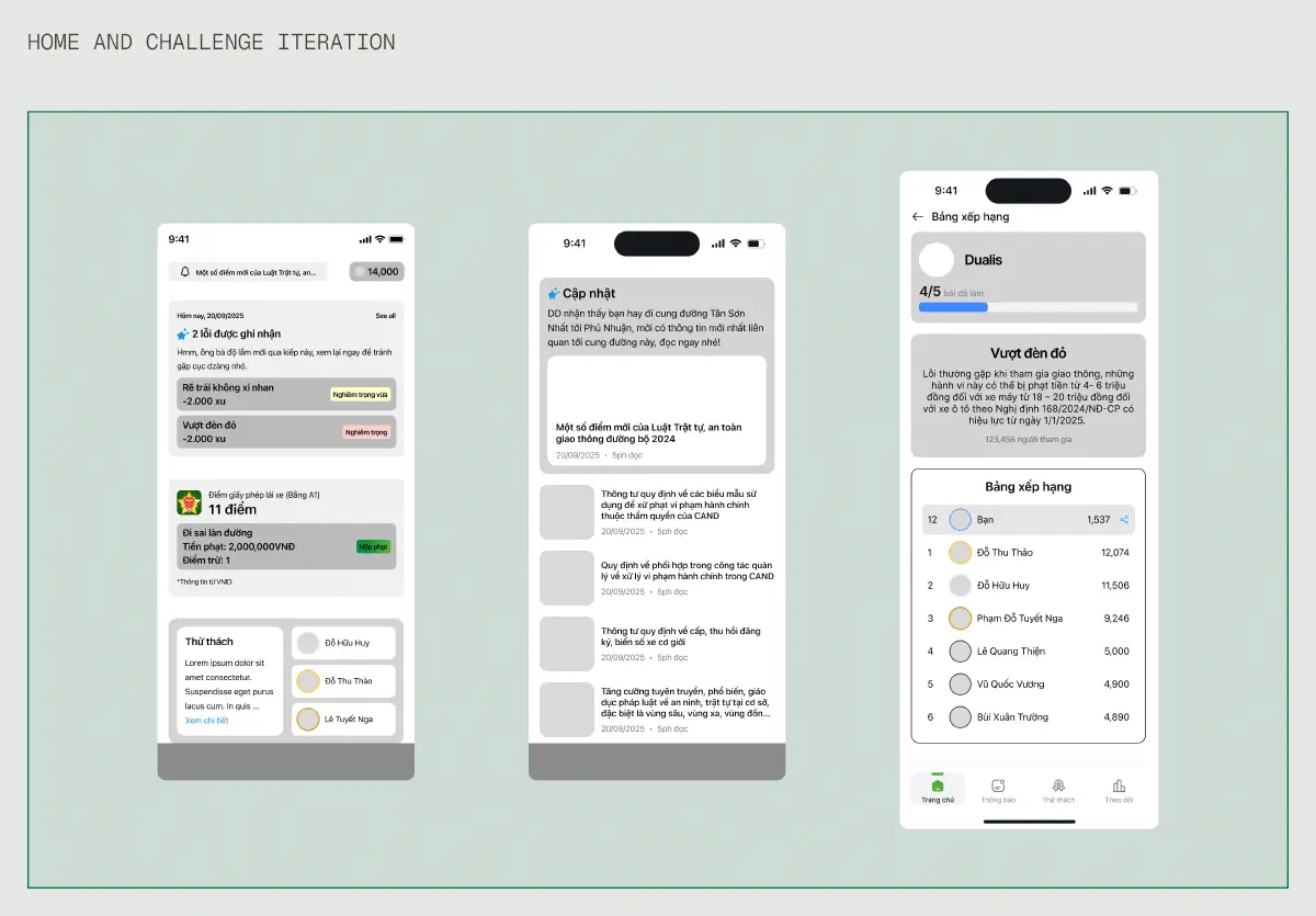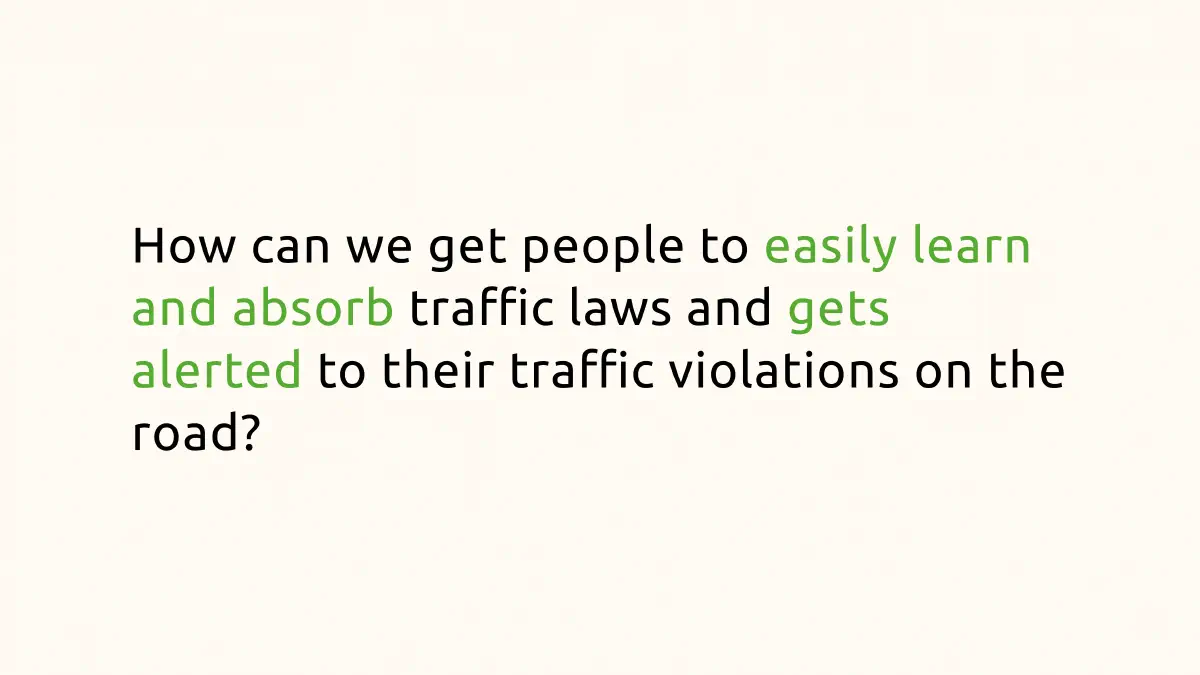 My UXR found that when participants join the road, they quickly found difficulty so due to obscured and complex existing traffic system which very hard to notice of within a short time, this leads to accidental traffic violations. My approach was to how I can design features that non-invasive and recognisable about the problems and they must also be engaging and humorous for generation Z whom is our target audience.