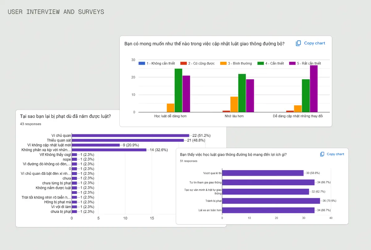 My team surveyed over 50 respondents and conducted 5 interviews with high school and university students in Hanoi. We focused on how they currently learn about traffic regulations and what happens when they unknowingly break them. And these are the key insights my team and I synthesized: